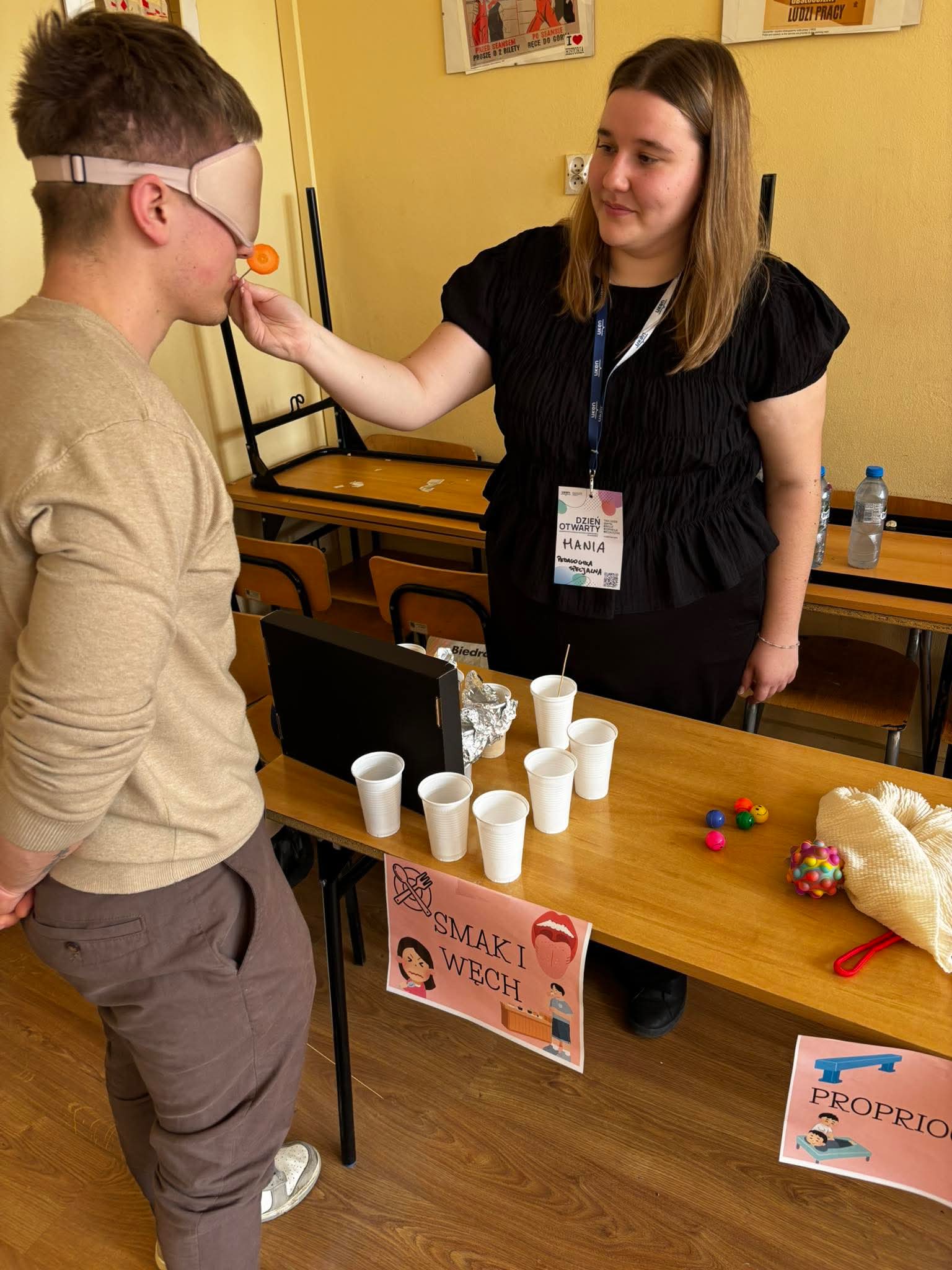 - Smak i węch: rozpoznawanie zapachów i smaków z zasłoniętymi oczami – część, która wzbudziła najwięcej emocji i uśmiechu.