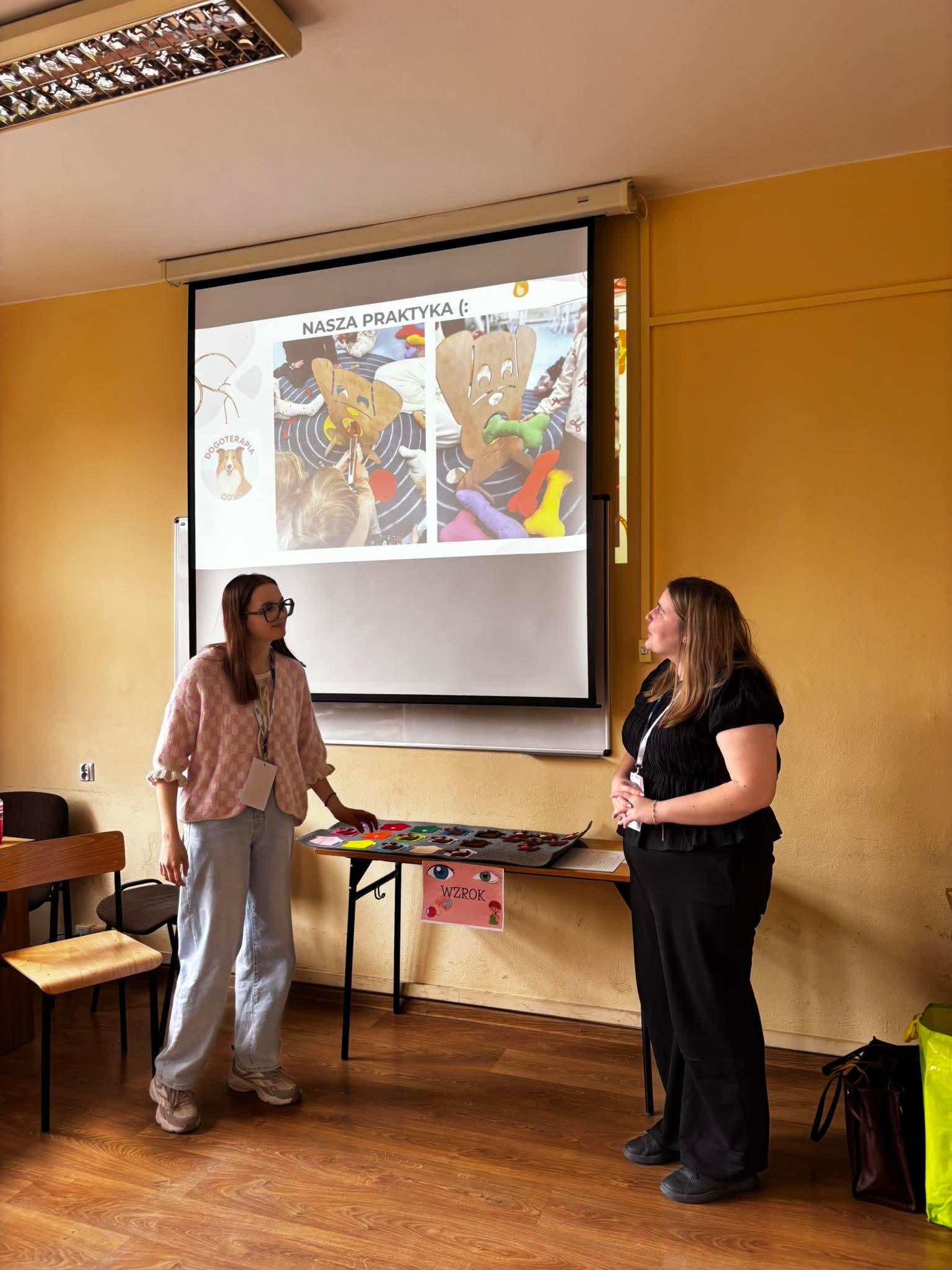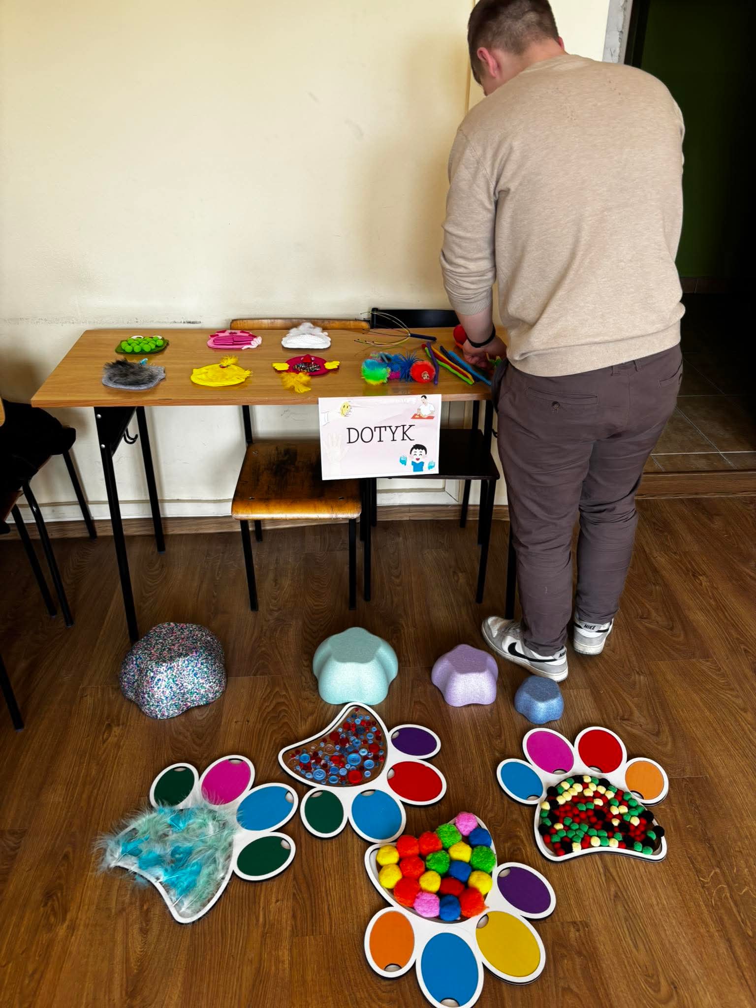 Po części teoretycznej uczestnicy zostali zaproszeni do interaktywnej ścieżki doświadczeń. Przygotowane stanowiska umożliwiły przyszłym studentom praktyczne poznanie pomocy sensorycznych: