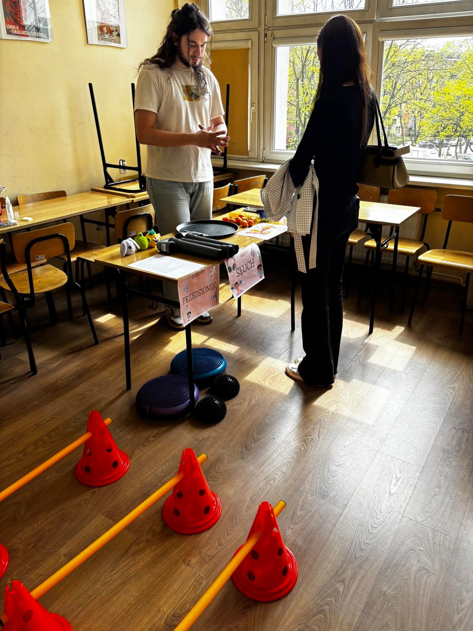 - Propriocepcja i układ przedsionkowy: prezentacja ćwiczeń z wykorzystaniem taśm oporowych, piłek sensorycznych i sprzętów do stymulacji czucia głębokiego.